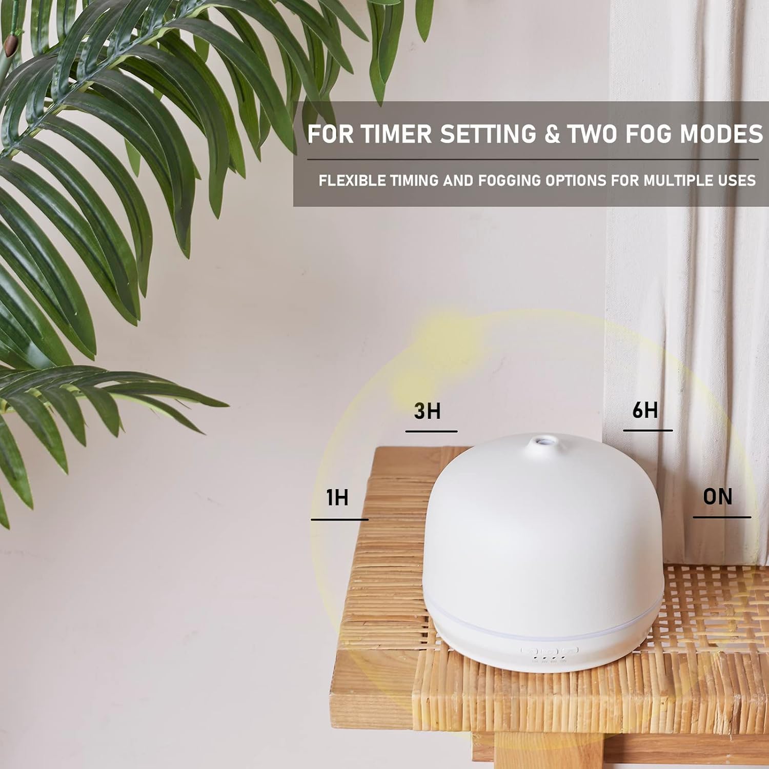 【WATERLESS AUTO SHUT-OFF】500ml. 4 timers, 1hr/3hr/6hr/at all times on. The diffuser will mechanically shut off as soon as the water runs out. Create a very stress-free and customizable atmosphere with easy to make use of mist, timer and light-weight settings.