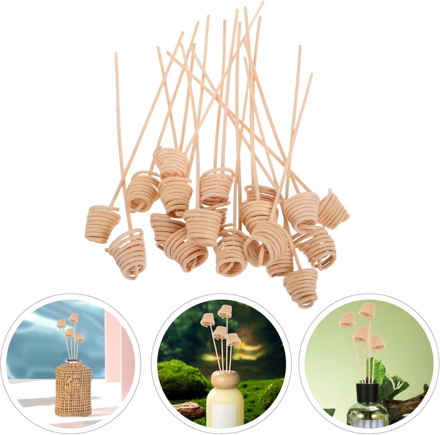 Pure Rattan Spiral Perfume Sticks Important Oil Aroma Refill Sticks for Diffusers for Dwelling and Workplace Aromatherapy Decor