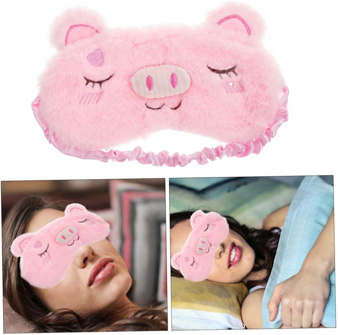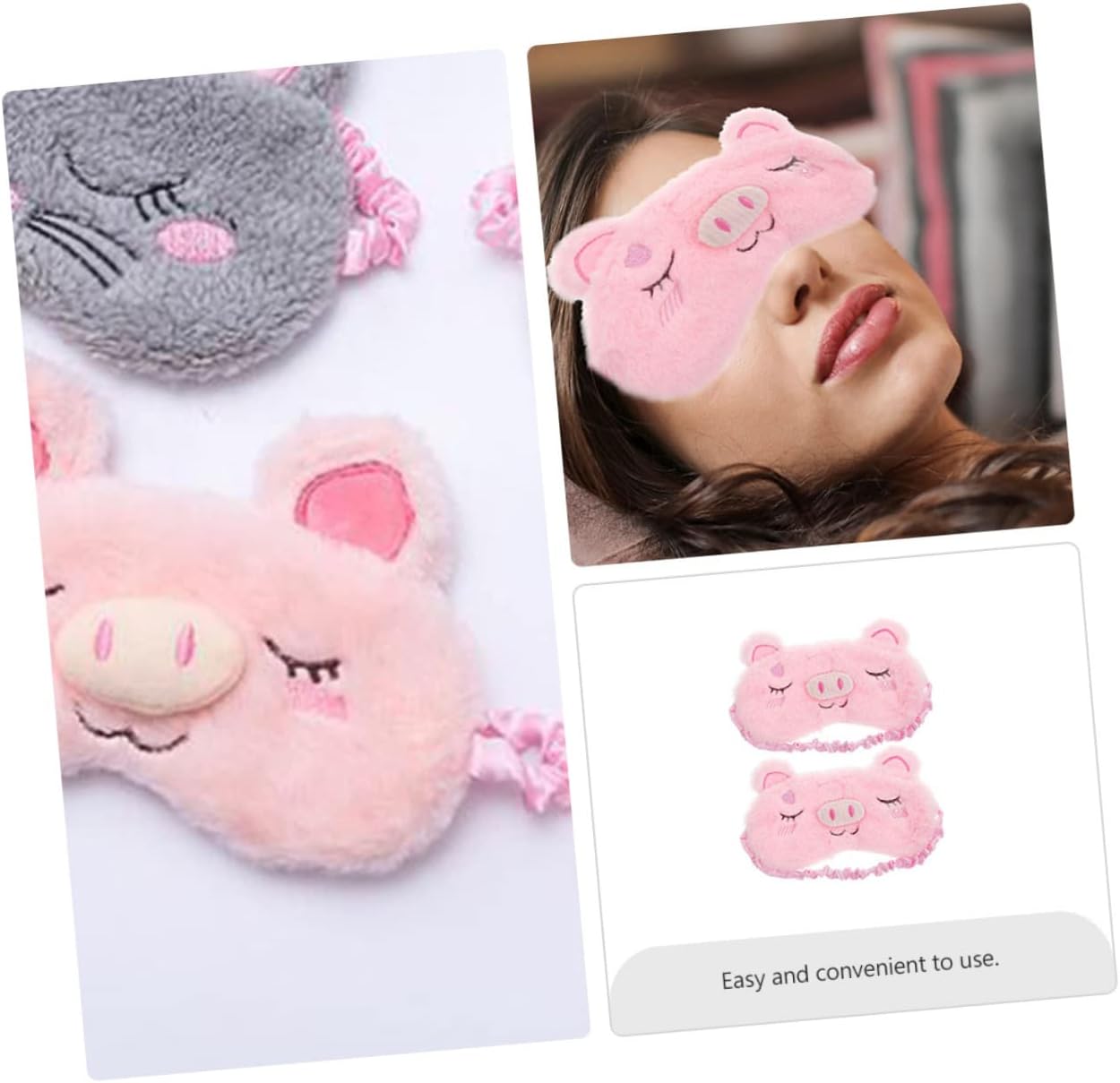 2Pcs Cute Cartoon Sleep Masks Plush Blindfold Eye Cowl for Comfortable and Lovable Animals Themed Eyeshade for Sleeping and Journey Eye Masks Pig Design