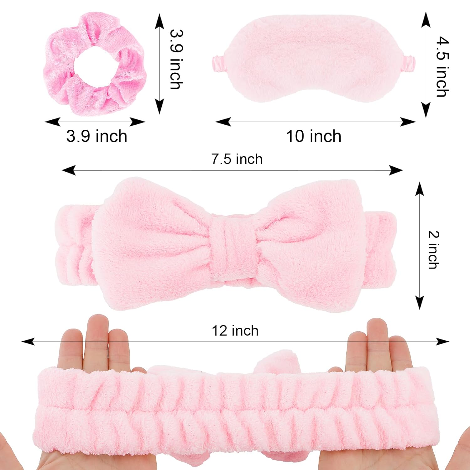 Spa Headband Set: The package deal incorporates 6 pcs pink spa headbands, 6 pcs plush sleep eye masks and 6 pcs scrunchies. You need to use them in your day by day life