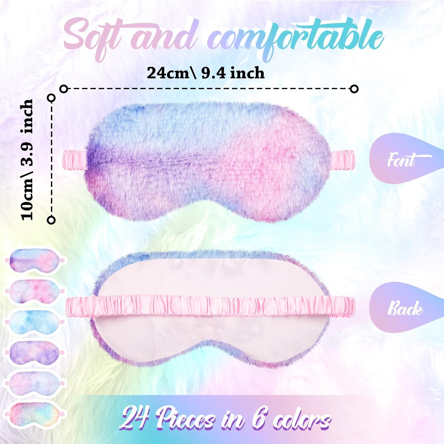 Geyoga 24 Pcs Plush Sleep Eye Masks Silk Furry Eye Covers for Sleeping Cute Sleep Masks Fluffy Snug Sleeping Blindfold for Journey Sleepover Nap Social gathering Provide Women Ladies, Rainbow Shade
