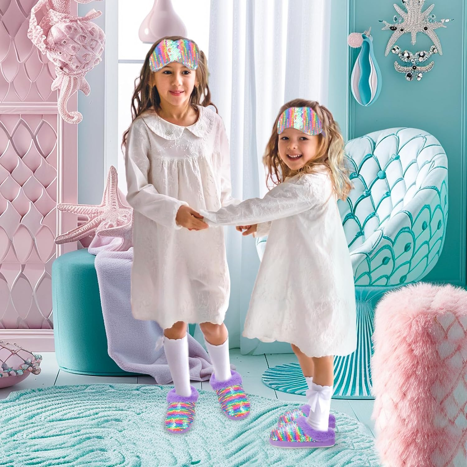 Ladies Plush Sequin Slippers With Sleep Masks, Cute Fake Fur Slip-on Footwear Reminiscence Foam Home Footwear for Ladies Bed room Slippers