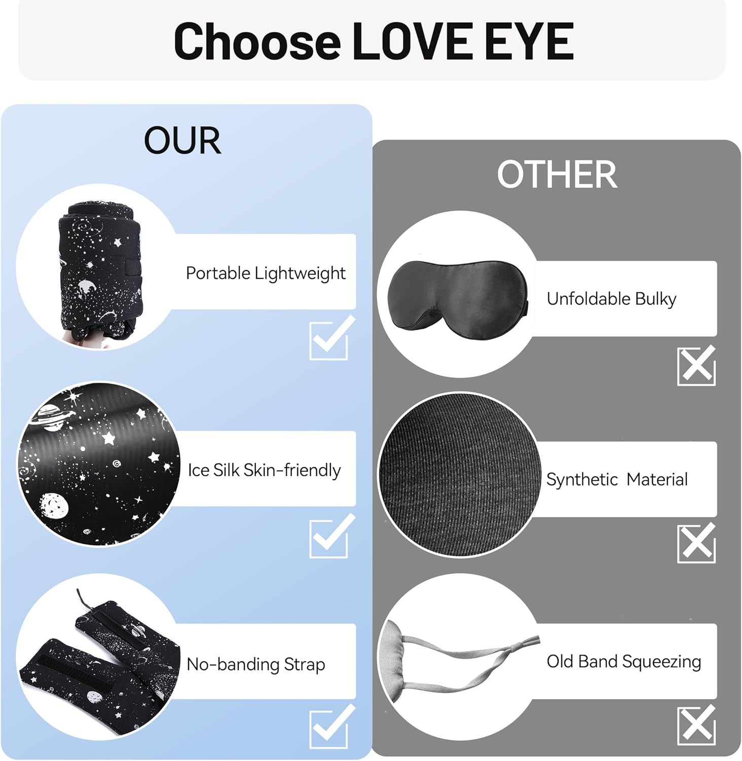 Consolation For All Seasons: LOVE EYE Ice Silk Sleep Masks designed to be light on delicate pores and skin, it alleviates stress on the eyes and provides a cool, silky, and comfy contact to your pores and skin, eyes, and hair Get pleasure from optimum consolation all year long, whether or not it is sizzling or chilly, making certain a restful sleep whatever the season
