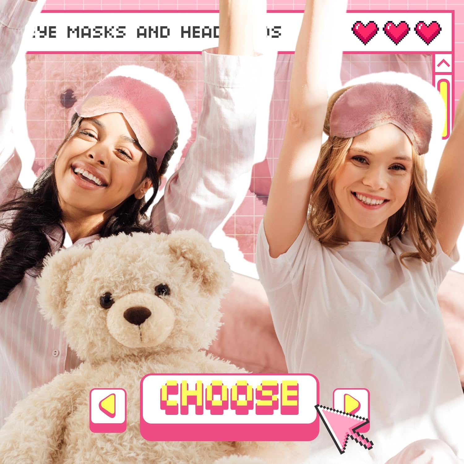 Newcotte Sleepover Occasion Provides for Ladies, 24 Pcs Contains Plush Sleep Eye Masks and Bow Hair Band, Fur Face Wash Headband Fake Fur Masks for Girls (Cute Model)