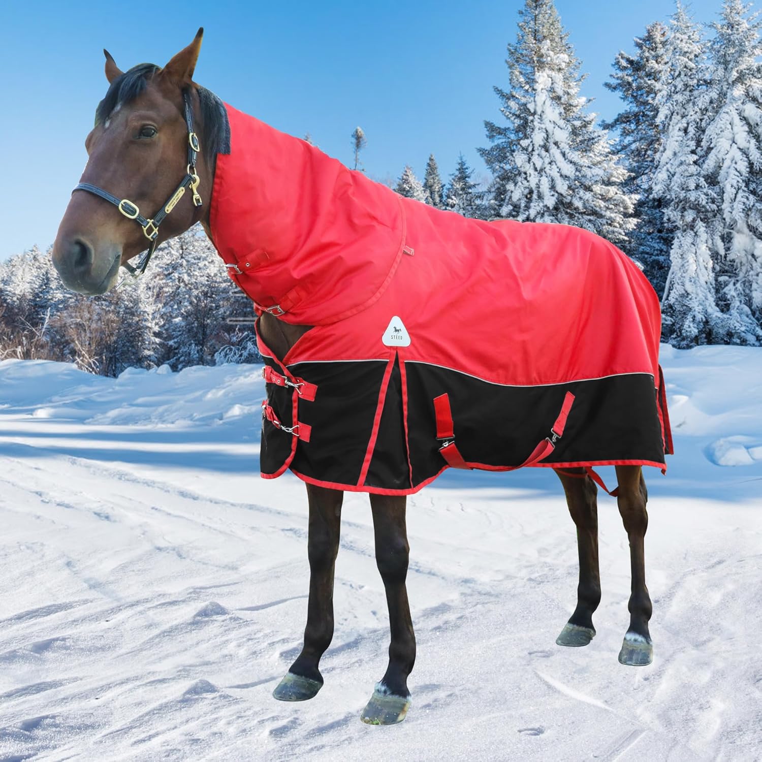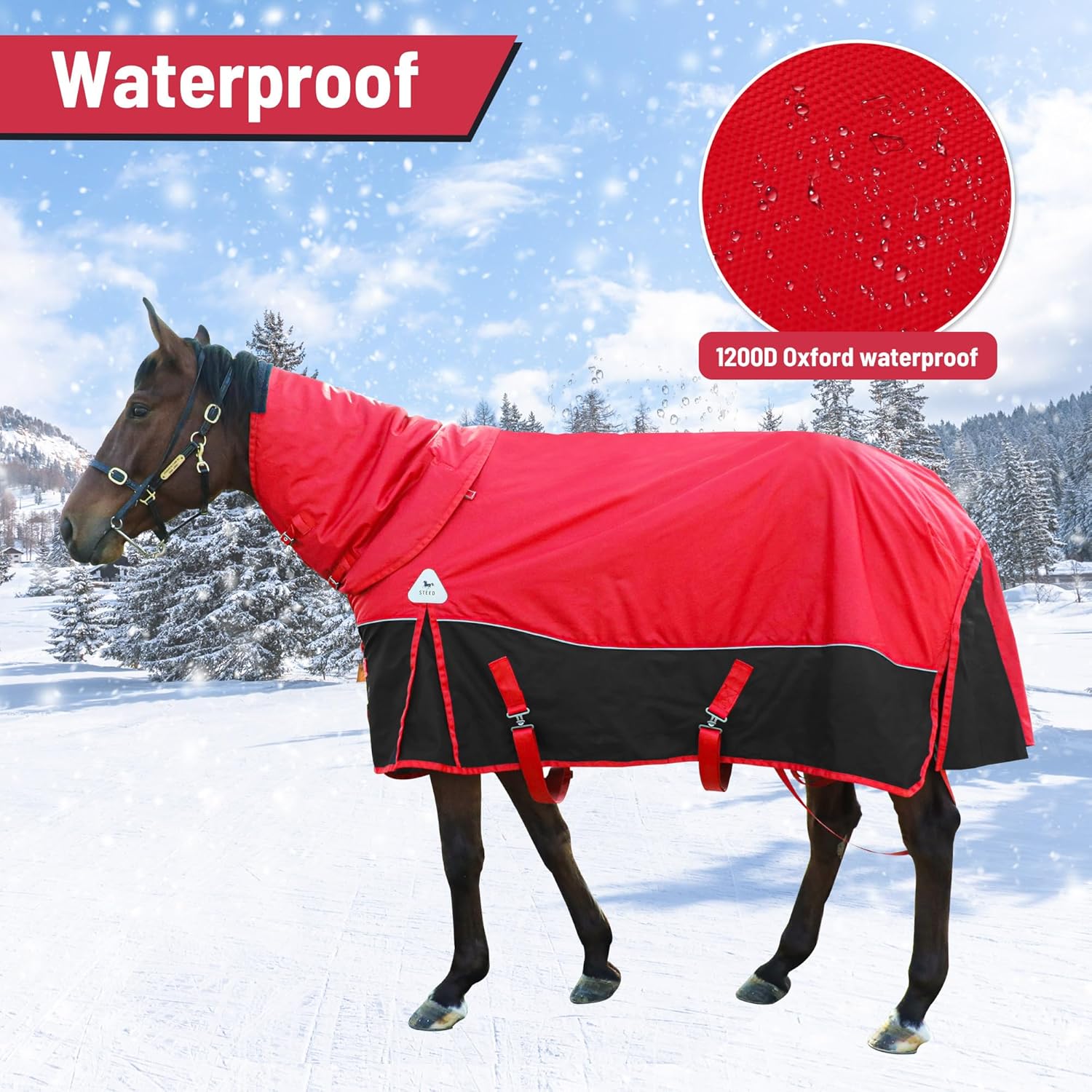 1600D Winter Horse Blankets Waterproof,Medium Weight Horse Blanket with Removable Neck Masks,Horse Blankets for Actual Horses,Shield Horses(Again Length72in Horse Height53in(135cm,Collar Fashion)