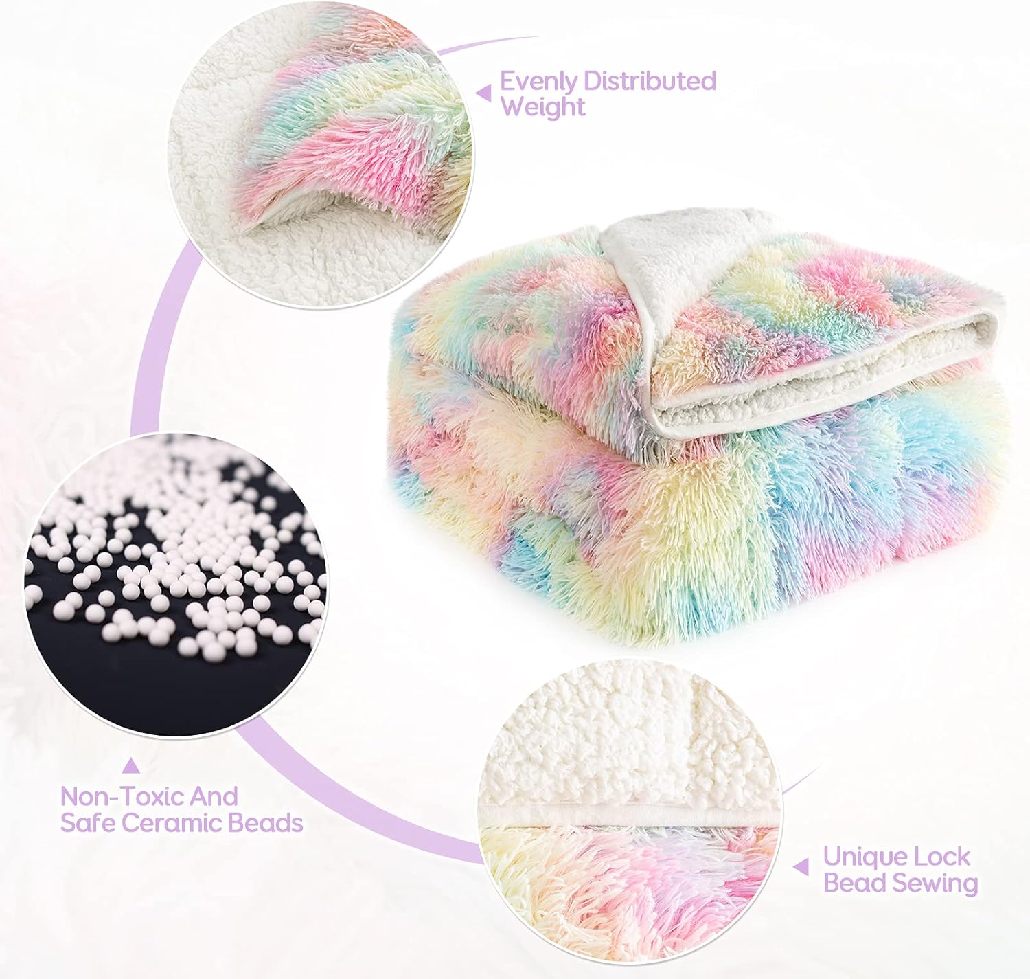 Cottonblue Weighted Blanket 15lbs Queen Dimension, Tender Fake Fur Sherpa Blanket, Reversible Fluffy Fleece Reverse Blankets, Heat and Cozy Rainbow Throw Ornamental for Bed room Couch Flooring, 60″x80″