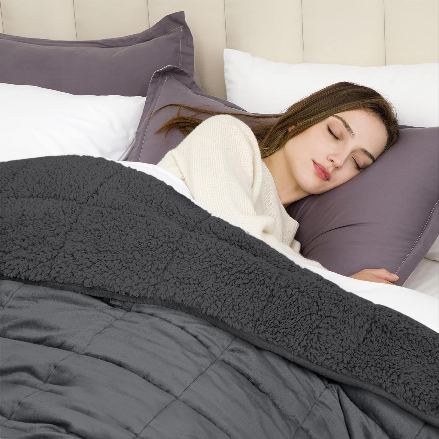 Intimate Sleep Companion – HBlife weighted blanket contains a reversible double layer cloud-like sherpa material, designed to supply pure deep and restful sleep for youths and adults with the sensation of being hugged, Consolation & heat maximized.