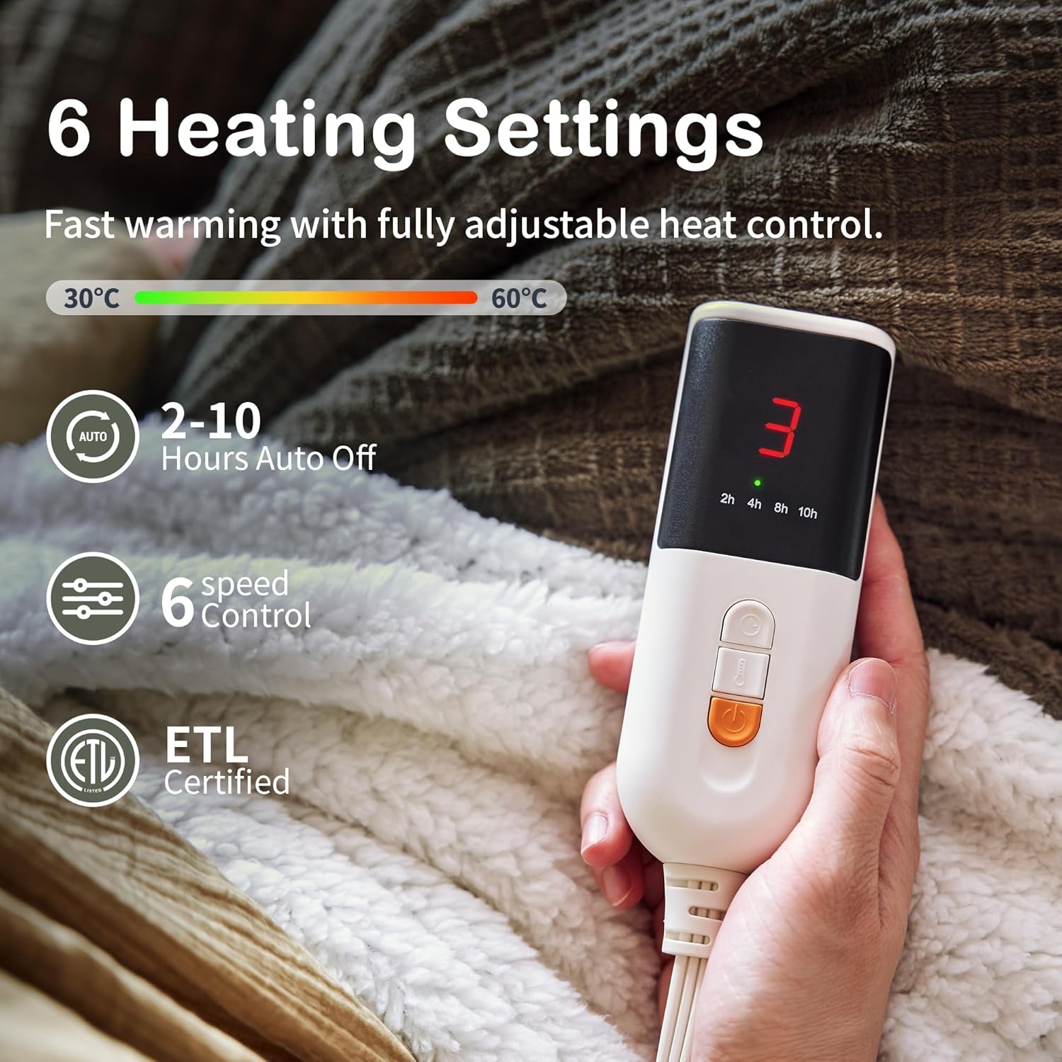 Heated Blanket Electrical Blanket Throw 50”X60”-Heating Blanket with 6 Warmth Settings-10 Hours Auto Off,ETL Licensed,Machine Washable (Grey Inexperienced)