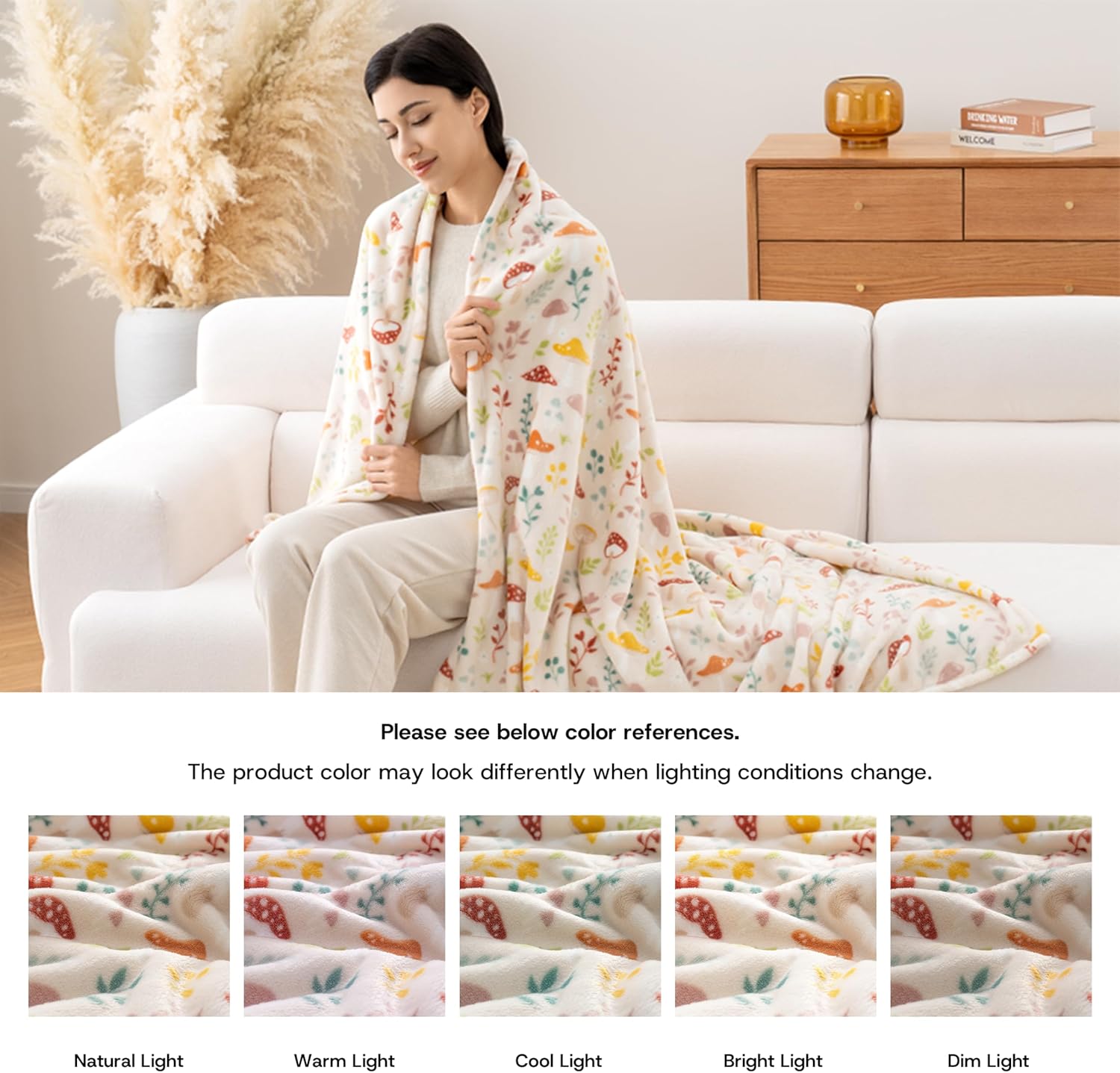 Luxurious Printed Fleece Heat Blanket, Gentle Light-weight Velvety Plush Throw for Sofa and Mattress, Cozy Cozy for All Seasons(Cream Numerous Mushrooms, 108×90 Inches)