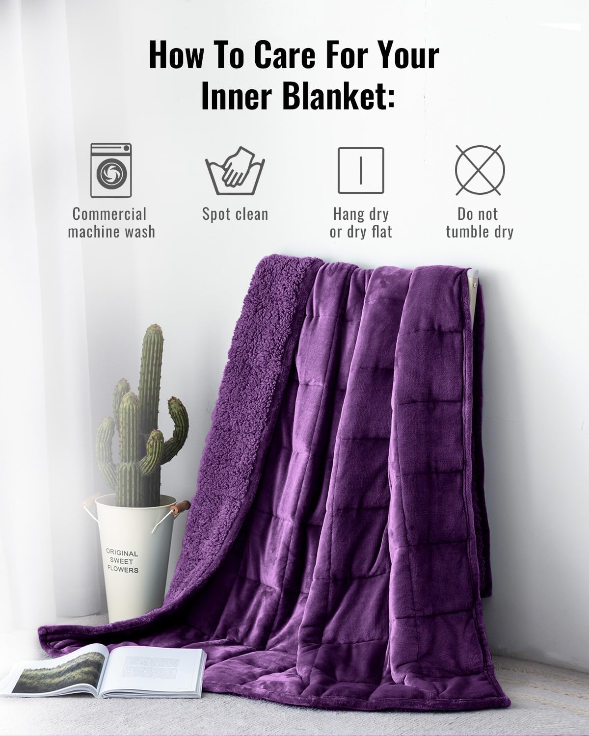 Uttermara Weighted Blanket for Adults, Queen Dimension Heavy Blanket with Reversible Delicate Shiny Velour Fleece and Cozy Heat Sherpa for Sofa Mattress, Calming and Stress-free, 60 x 80 inches 15 lbs in Purple