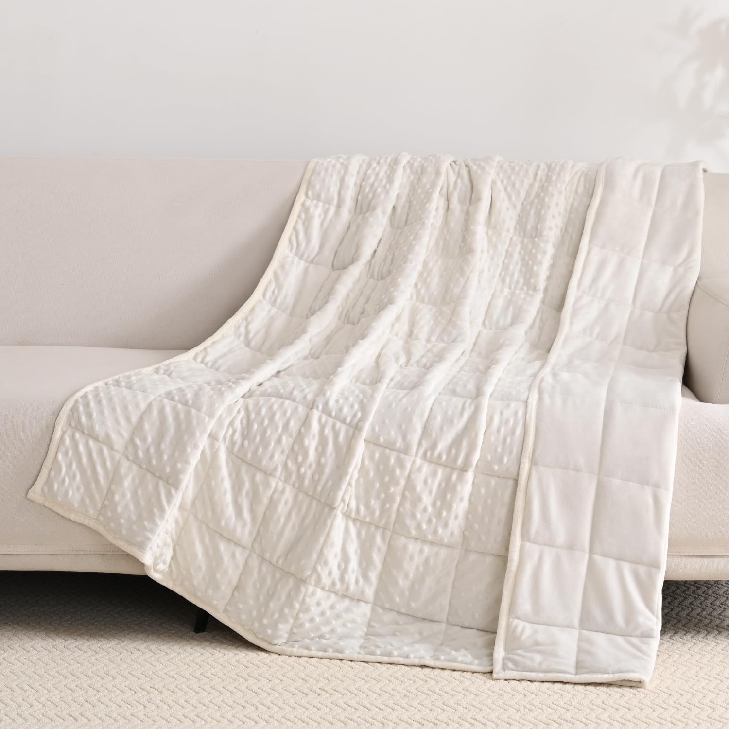 Wemore Minky Dot Weighted Blanket for Adults Queen Measurement 15 lbs, Comfortable Heavy Blanket for Stress Aid and Sleep Promotion, Breathable Blanket for All-Season with Glass Beads, White 60 x 80 inches
