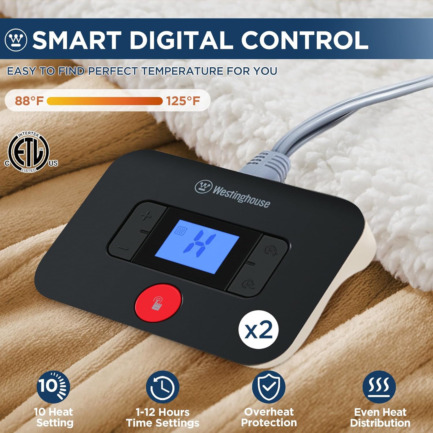 【Fast and Constant Heat】 Westinghouse electrical blanket options high-quality heating wires, densely and evenly distributed all through. This ensures speedy warming and constant, comforting warmth.
