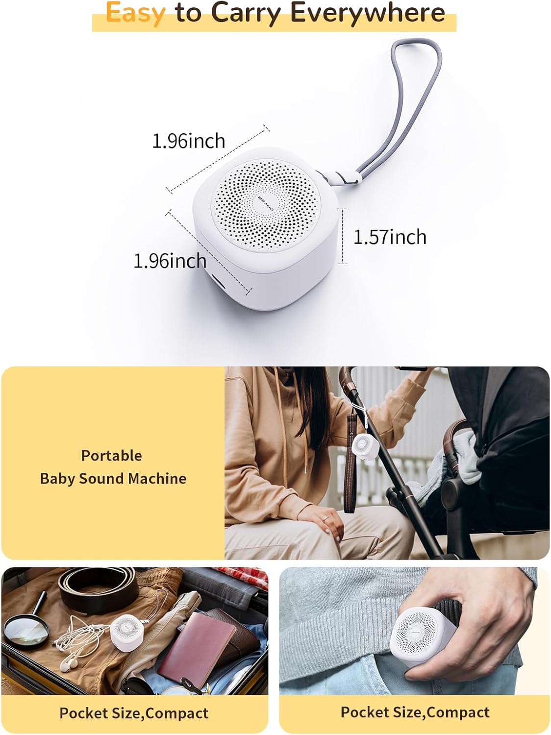 【Transportable Mini Sound Machine】Pocket dimension 1.96×1.96×1.57inches White Noise Machine, solely 2.5oz, light-weight and simple to make use of and carry. And protected ABS materail,mellow contact,pleasant for child to press and stimulate their curiosity.