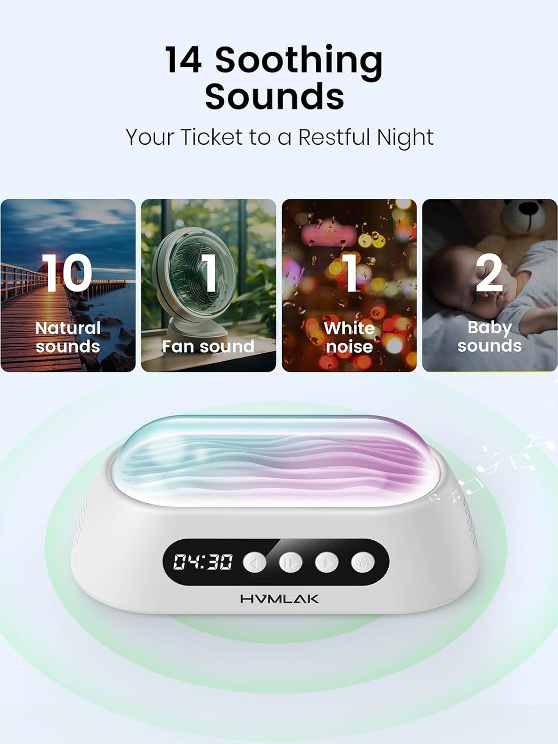The HVMLAK Soul24 is a flexible sleep sound machine for adults and a dependable sound machine for teenagers. The 14 rigorously curated sound tracks together with white noise and pure appears like rain and ocean waves, assist to create a chilled setting that promotes deeper and extra restful sleep.