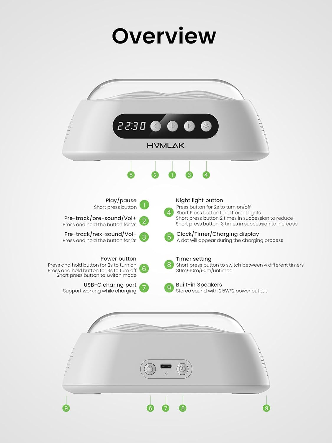 HVMLAK Soul24 White Noise Sound Machine with Bluetooth 5.4 Speaker