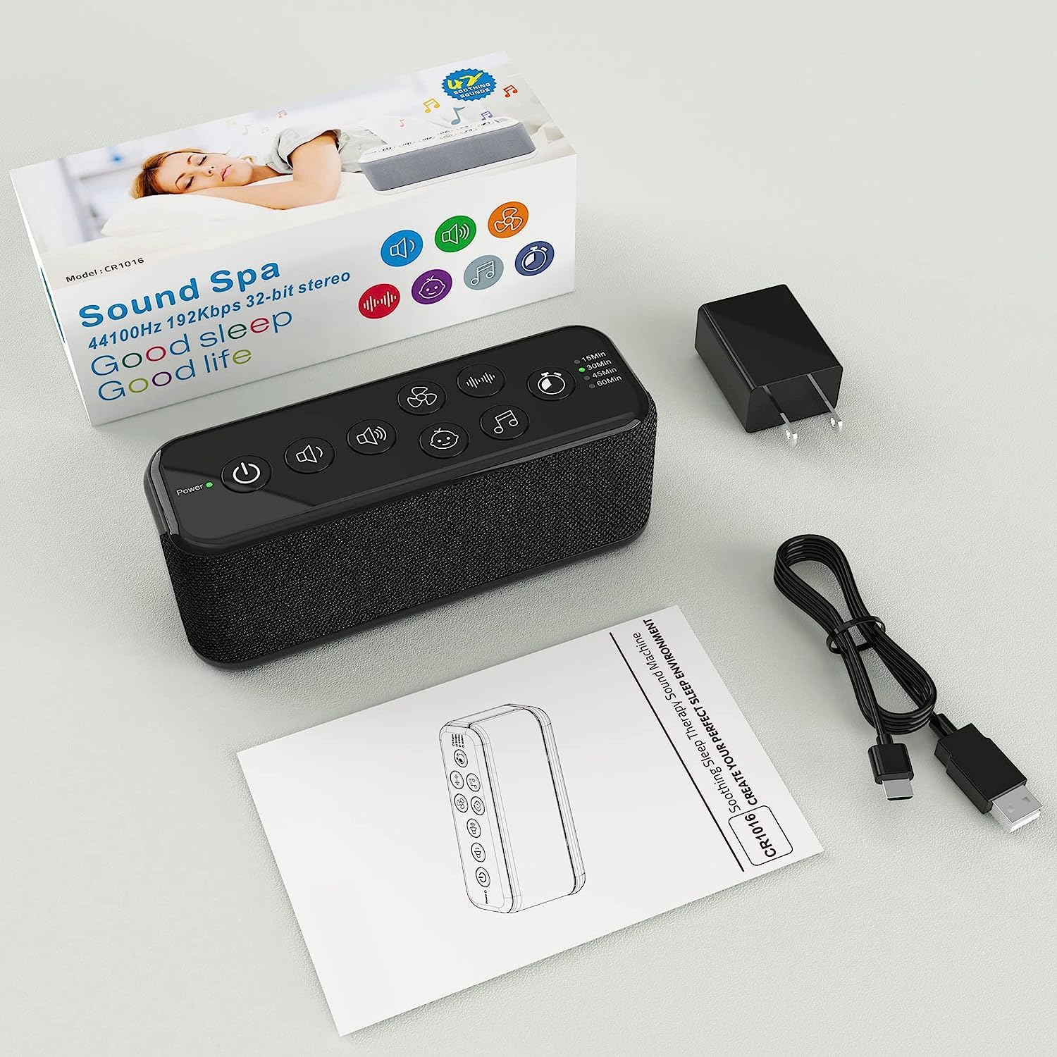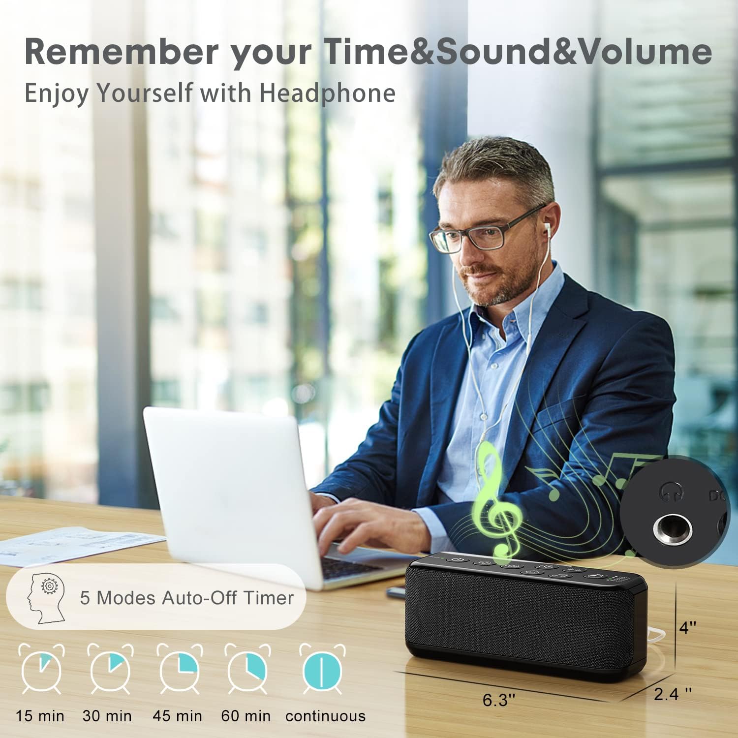 White Noise Machine for Adults, Rechargeable Sound Machine for Sleeping with Headphone Jack with Lullabies & Fan Sounds, Auto-Off Timer, Adjustable Quantity, Noise Cancelling Machine for Workplace Privateness