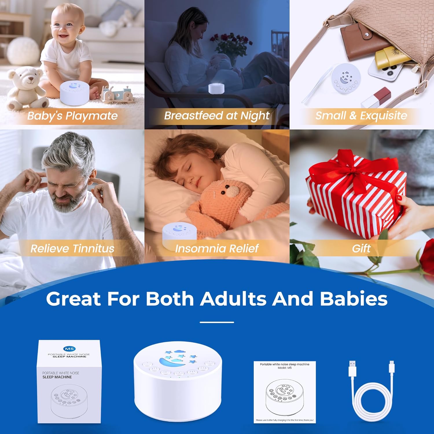 White Noise Machine, Transportable Sound Machine for Child and Grownup, 18 Soothing Sounds, Night time Mild, Highly effective Battery Life, Excellent Sleep Support for Residence and Journey, Nursery Important (White)